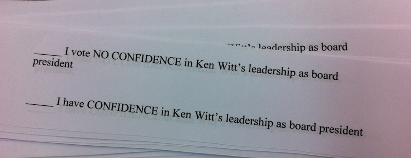 The vote of no confidence, a symbolic boiling point, was based on similar surveys taken at the school level, according to a union spokesman. The response — from union and non-union members alike — was overwhelmingly unfavorable toward Witt, he said.