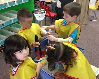 The three- and four-year-olds at Promise Christian Preschool in Lafayette were busy playing at the water table, painting letters, and pretend grocery shopping on a recent Tuesday morning.