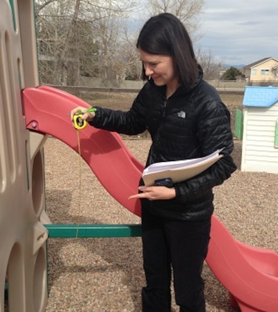 At the same time, there were some things they couldn’t easily improve. They knew the playround, which Stowell said is a problem area for many facilities, would cost them some points. While it appeared perfectly acceptable to a casual observer, Stowell found several issues as she measured equipment spacing and looked for hazards like easy-to-open gates, protruding bolts and wide gaps between rails.