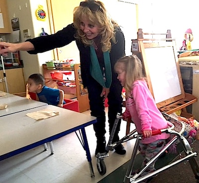 During a recent morning at TLC, Sturgeon chatted with teacher Caitlin Moles about efforts to help one child who uses a walker become more independent and to encourage another with speech difficulties to use words instead of letting others speak for her.