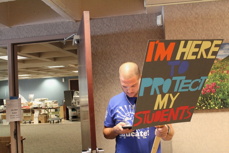 During the school year, Andy Fine is an elementary school teacher in Loveland’s Thompson School District. This summer he’s interning with the CEA, and rallied more than 25 Thompson teachers and parents to drive to Denver for Wednesday’s action. “Someone’s gotta stand up for our kids,” he said. “My life and passion is standing up for kids.”