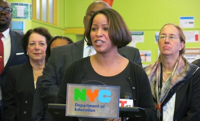 “If you’re not in school,” she said during the announcement at P.S. 15, “you can’t learn.”