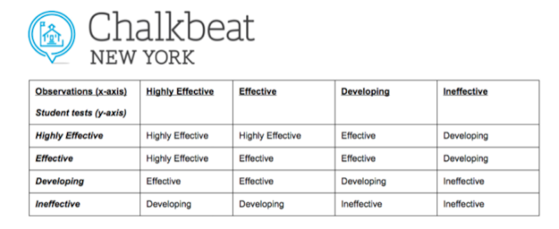 Observations and test scores will be combined into final ratings using this matrix, which is codified in law.