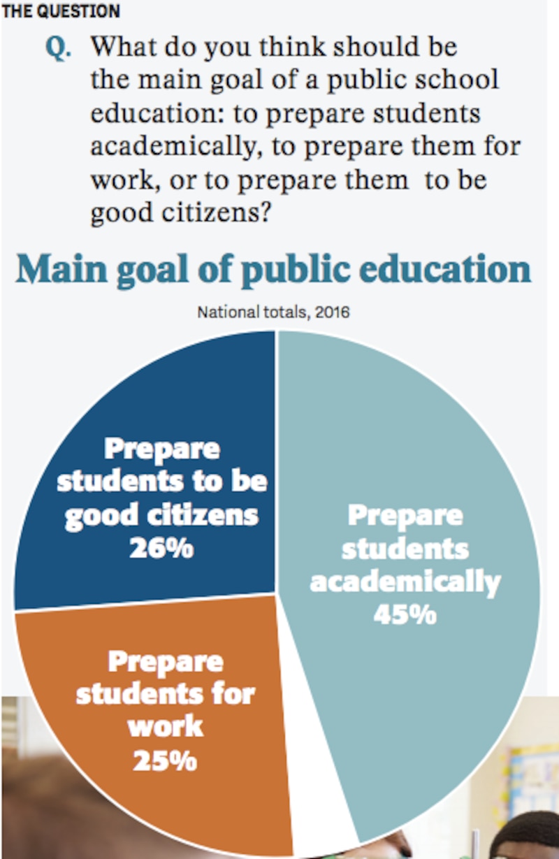 Those are just some of the findings from an annual poll published Monday by PDK International, a professional association of educators. And while the study is based on a representative sample drawn from across all 50 states, Josh Starr, a former New York City teacher who is now CEO of PDK, said the findings map onto local debates about the city’s “Renewal” turnaround program, for instance, and state policy on career and technical education.