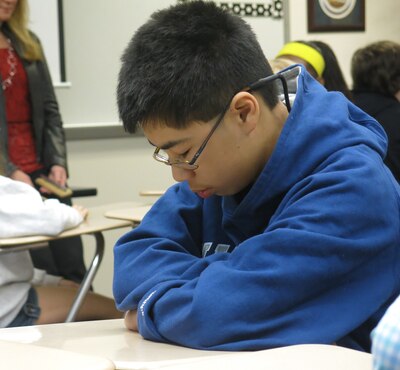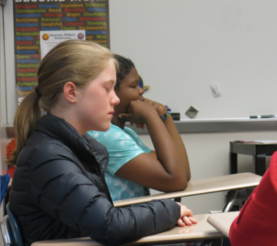 USN 6th grader during a mindfulness practice. (J. Zubrzycki)
