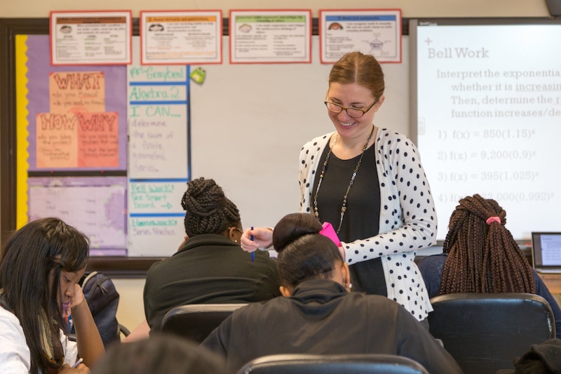 But on most days in 2011, her first year of teaching at Raleigh Egypt Middle School, Graybeal’s eighth-grade math students were struggling at basic addition and nowhere near ready to tackle the pre-algebra concepts they were expected to master on the state achievement test. Sometimes, she struggled just to settle down her students enough to listen to her lesson. On other days, transitioning them to small group work, a method her principal had suggested, dissolved into raucous chatter.