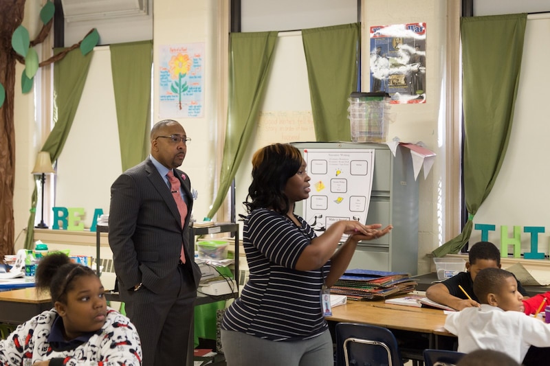 On the other end of the city, in North Memphis, veteran teacher Sherry Simmons was in that same group. Simmons said she’s getting the kind of support she wished for when she began teaching in the district in 1979. An English teacher at Raleigh Egypt High School, Simmons said her principal, Bo Griffin, visits her several times a week, offering suggestions on how to improve lessons. Recently, she said, he noticed that she was asking students to recall too many “whats” from their reading and encouraged her to challenge students to explain “the why” instead. On some days, he just leans back against a wall watching, offering moral support.