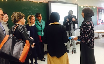 Nodding along was Randi Weingarten, the head of the American Federation of Teachers who spent the morning at the Dearborn, Michigan school to advance a goal of her own: getting the Trump administration to redirect public funding from cracking down on immigration to supporting public schools.