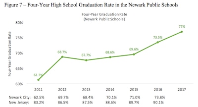 The study is focused on standardized test scores, a significant limitation that means it doesn’t speak to other effects of the reforms on students. A separate analysis, funded by the Community Foundation of New Jersey and also released Monday, points out that high school graduation rates in Newark rose substantially in 2016 and 2017, after remaining flat between 2012 and 2015. Enrollment in the city schools has also trended upward in recent years.