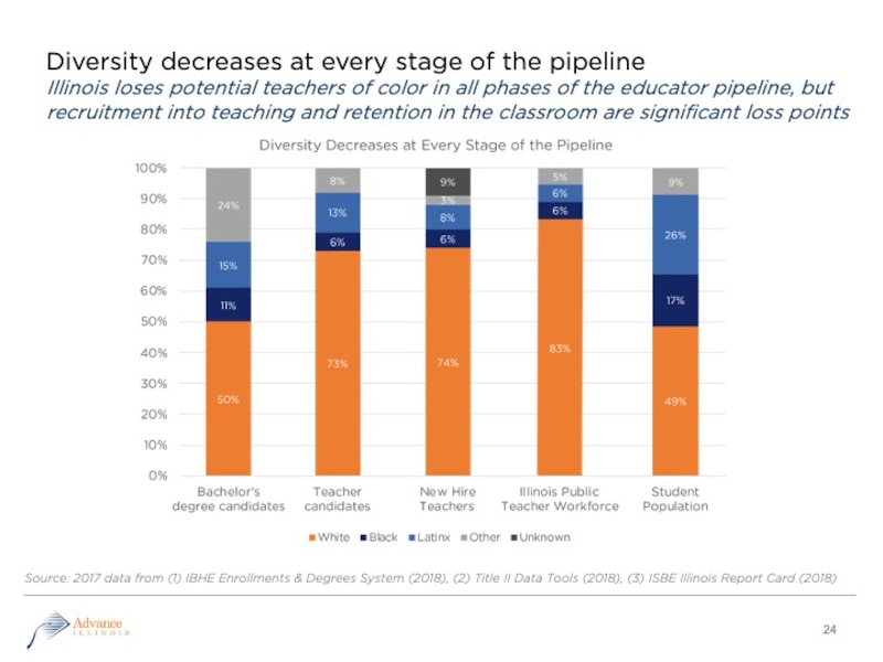 About 50% of bachelor degree candidates are black, Latino, or non-white, but in Illinois, just one in four new hires is non-white.