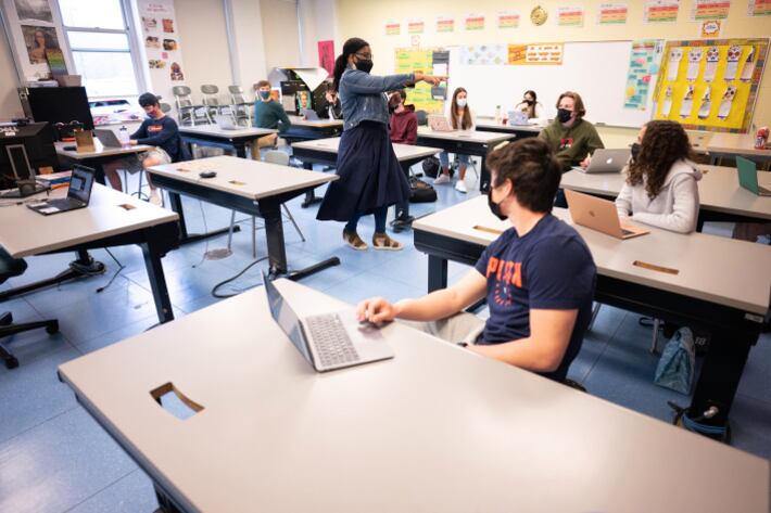 Walter Payton, a selective-enrollment high school where Monday’s press conference was held, had one of the highest numbers of students returning to in-person learning. Students who elected to return to classrooms can attend Walter Payton at most two days a week. At some smaller schools, students have the option of returning up to four days a week, while some of the city’s largest high schools can only offer in-person learning one day a week, according to the agreement district officials reached with the teachers union.
