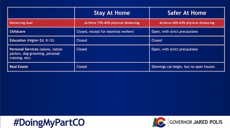 Colorado’s current stay-at-home order expires Sunday. A separate order closed all Colorado schools through April 30, and roughly two dozen school districts that serve the majority of Colorado students, including most districts in the Denver metro area, already had made their own decision to close through the end of the school year in late May.