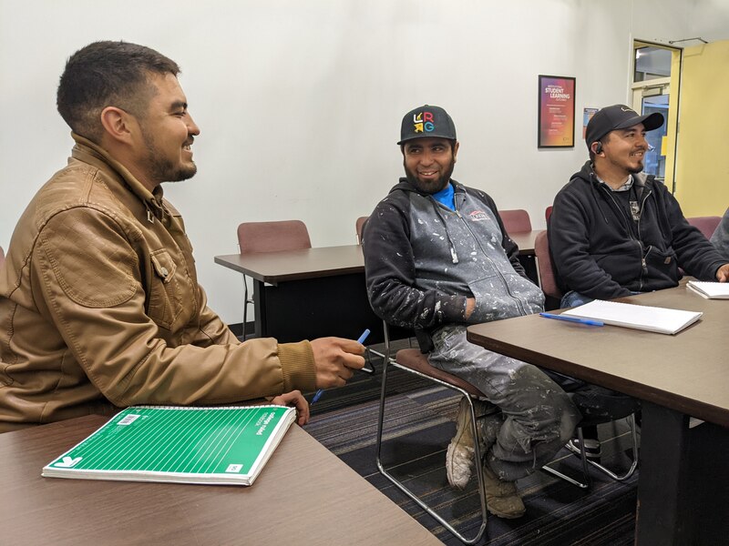 In one of the beginner classes, students who work at BrightView Landscape attend a class at the school’s north Denver campus. The landscaping company partnered with the school to teach its workers English so they can communicate better on the job and also to advance.