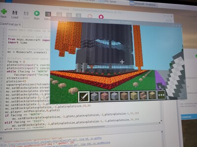 Eventually, Nowling and Mundell settled on a version of Minecraft that would work that runs on Raspberry Pi computers, which are popular among hobbyists. They are about the size of a 1-inch-thick credit card and cost the school less than $100 each, Mundell said. Students hooked them up to televisions and monitors provided by the school. Then, students use the coding language Python to build in the Minecraft world.
