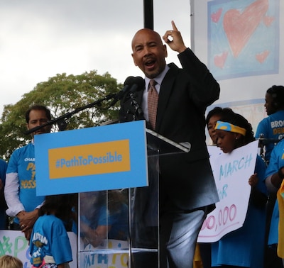 When Bronx Borough President Ruben Diaz Jr. took the stage before a sea of cheering charter school students and their families, one might have expected him to have strong words for Mayor Bill de Blasio.