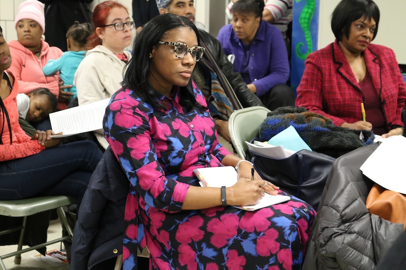 Valencia Moore, PTA president of P.S. 36, listed all the repairs and resources she says are needed at her school: new electrical wiring, stronger Wi-Fi, replacement desks and new bookshelves.