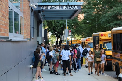Students outside the private Churchill School in Manhattan. (Alex Zimmerman / Chalkbeat)