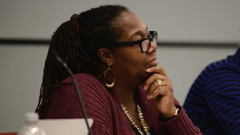 Former School Reform Commissioner Sylvia Simms listens to testimony during her time on the SRC. (Bastiaan Slabbers/for WHYY)