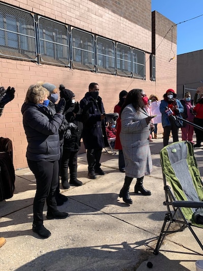 Several miles away in Mount Airy, about thirty teachers, roughly half the staff, taught remotely outside CW Henry Elementary School. Some bundled up outside the front entrance and others sat in their cars. During breaks, they said that they want further assurances that buildings are safely ventilated and they also want to be vaccinated.