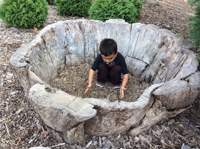 “A slide—you can only slide on it,” said the Humboldt Park native, who this fall will move from Spry to the Velma Thomas Early Learning Center in McKinley Park. “But a stump can be a stump, a cookie, a dog’s house, a million things that kids develop into their own play.”