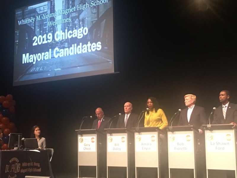 The teenage moderators of a Thursday forum at Whitney Young High School may have been inexperienced, but they didn’t go soft on the 11 Chicago mayoral hopefuls who attended, quizzing them on everything from marijuana legalization to school closings and teacher union negotiations.