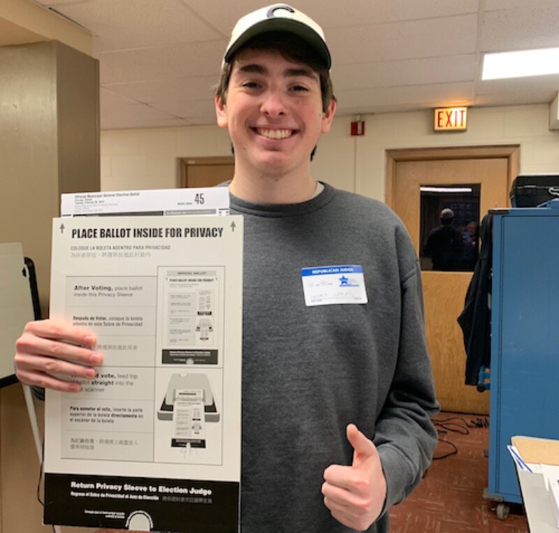 Vogel worked as a student election judge at his local precinct polling place, which he helped set up and manage on Election Day as part of a program with Mikva Challenge, a youth-focused civics advocacy organization. Vogel researched candidates’ positions and read media analysis of platforms to inform his vote for Preckwinkle, who he aligns with for her opposition to building a new police academy and her pledge to dismantle the city’s gang database.