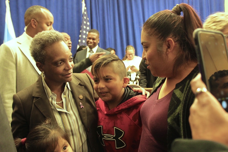 On Wednesday night after her press conference in Pilsen, Nury Ortega and her son Alexander Perea-Ortega made a point to get a word with the mayor. “I know it’s hard to find the money,” Ortega said. “But for us, it’s really important. We need teacher and support staff.”