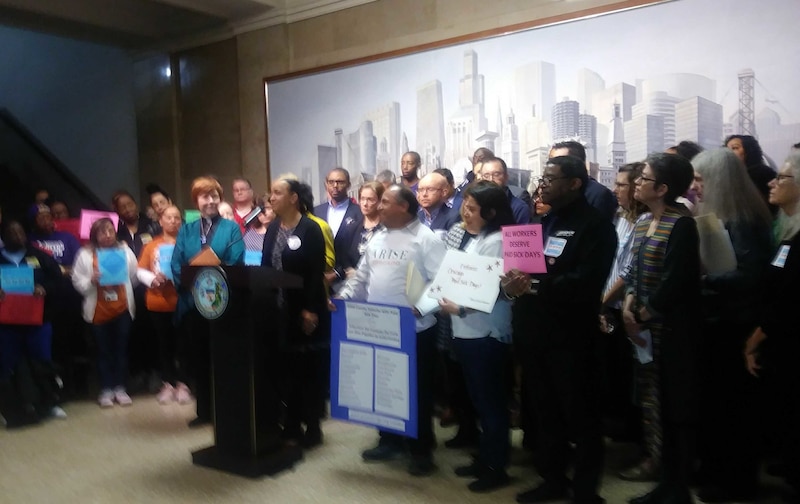 Chicago Teachers Union leaders joined other labor groups at Chicago City Hall Wednesday morning to rally around what they dubbed “a common good platform” to protect workers and families during a coronavirus outbreak. Labor leaders called for the passage of statewide paid sick leave legislation.