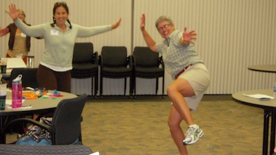 The 25 teachers spent all day with Strater learning various strategies to not only build movement into classroom activities, but to make that movement tie in to the students’ academic objectives. They, in turn, will go back to their respective schools and share what they’ve learned with their colleagues.