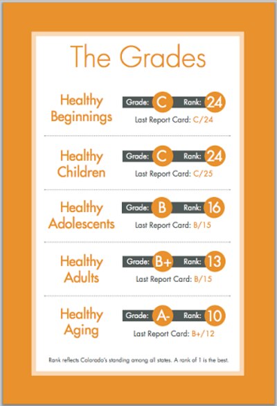 Analysts from the Institute said Colorado would have earned a C+ this year if its immunization ranking had stayed at 18th. Others indicators in the “Healthy Beginnings” category include prenatal health care, smoking status during pregnancy, low birth weight, and infant mortality.
