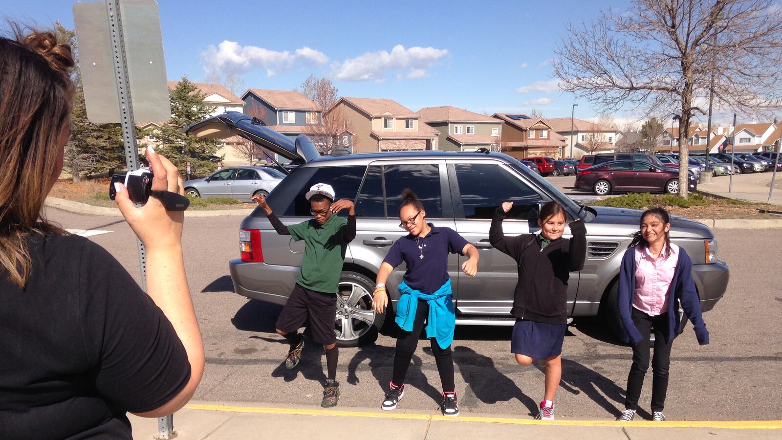 But once the camera started rolling, the kids nailed it. The group then moved to the school’s front parking lot, where Parker and Davis had decided to film what would be the video’s closing scene. The idea was for the kids to be dancing in front of a car.