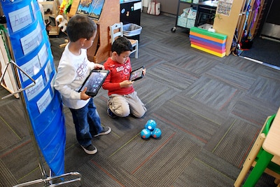 In Longmont, preschoolers learn the basics of coding by giving directions to a robot named Dash that moves across the floor.
