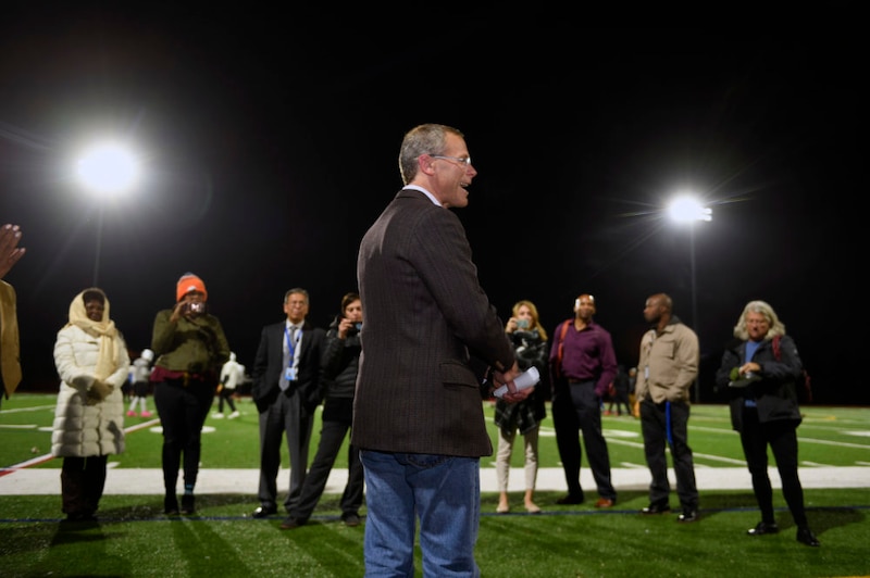 Now, in the waning days of his superintendency, Boasberg was headed back to Montbello for a celebration. The small schools that share the campus had just reopened their library after months of renovations and years of not having a full-time librarian. Plus, the football field was set to switch on its first-ever stadium lights — a big deal in a neighborhood with a proud history of excelling at high school sports and the packed trophy cases to prove it.