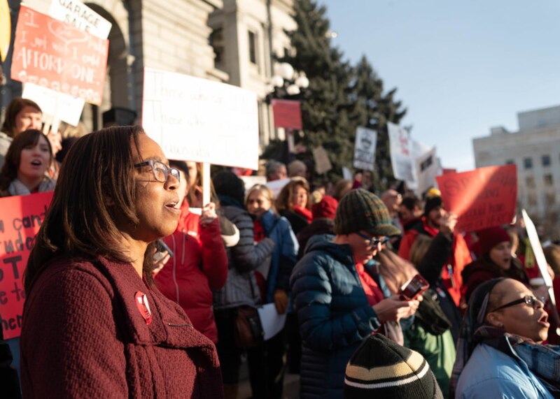 Hundreds of teachers wearing red rallied Wednesday at the Colorado State Capitol as the Denver school district and teachers union prepare to return to the bargaining table.