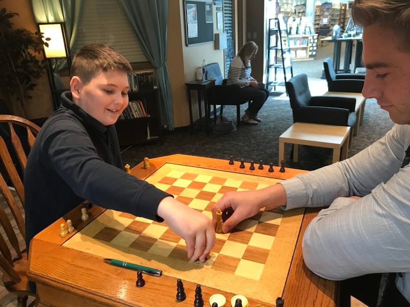 He and his teacher closed out the hour at the library’s chess board, tucked in a corner nook by the front doors. The game ended in a draw. Usually, Jake wins.