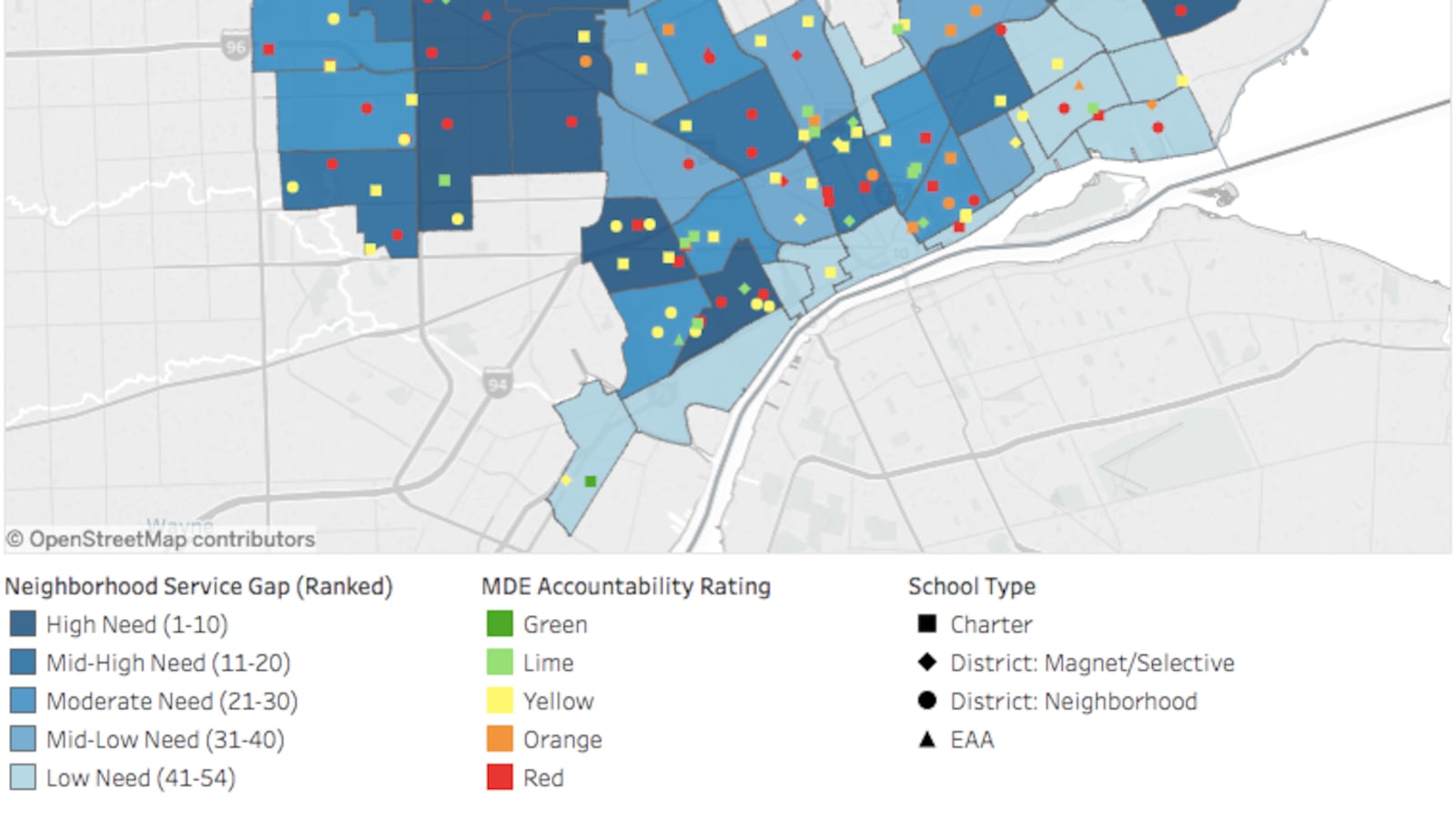 The study includes an online tool that allows Detroiters to see which neighborhoods have performing schools as well as the conditions of those schools, and the basic demographics of the students who attend them.