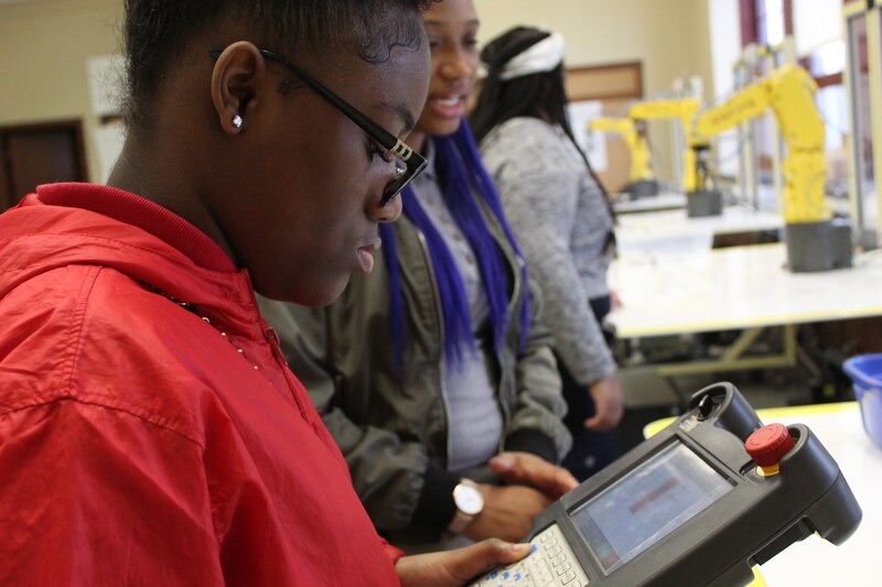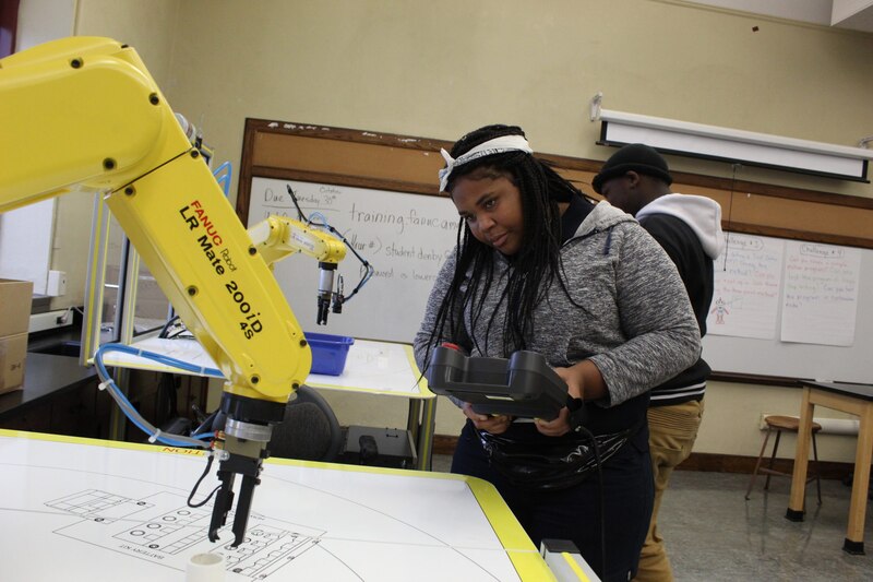 Now she’s combining her skill sets as Denby’s new robotics teacher, guiding students through a certification program that the district sees as a step toward training students for careers. Last month, FANUC, a manufacturer that supplies robots to the Detroit auto industry, donated eight robots to high schools in the Detroit district, including Denby High School, where she teaches science.