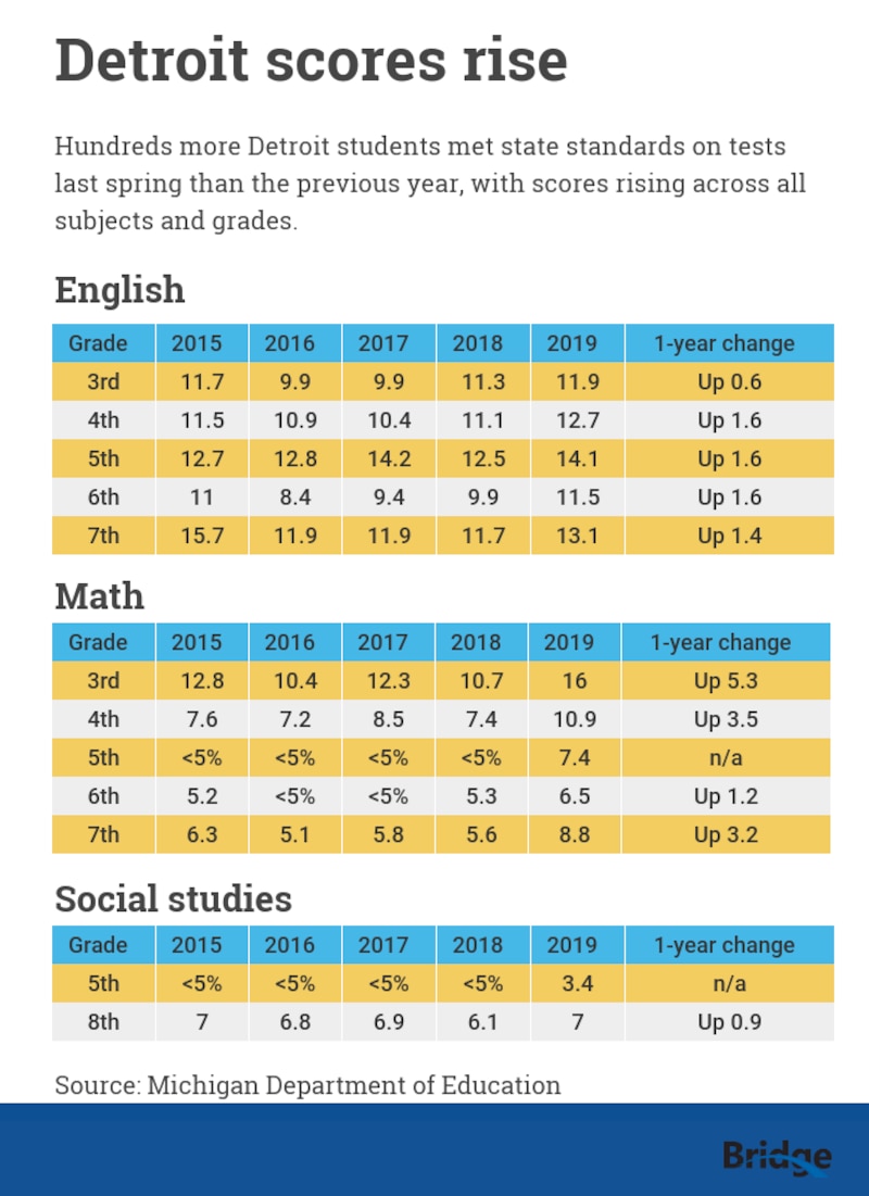 After years of bleak academic results, the Detroit school district is a bright spot in newly released state test scores.