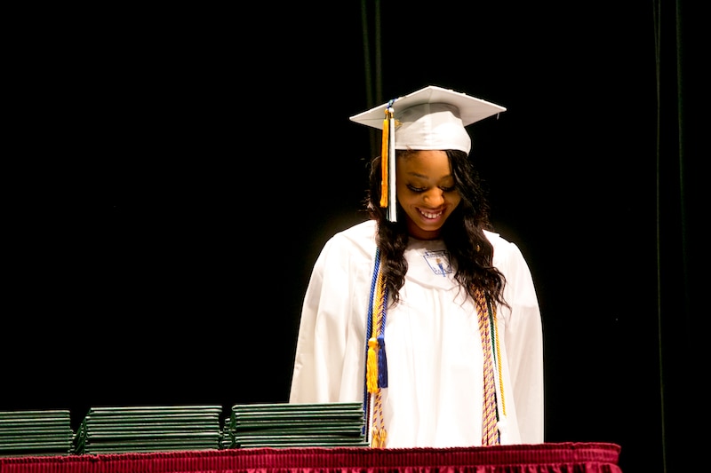 Then, it was McClendon’s turn. A top student and dedicated debater who had been admitted to the state’s most selective public universities, she had prepared a speech in which she remarked on the transition that had marked her senior year, when three schools on the Cody campus merged into one. She also urged her fellow graduates to persevere beyond obstacles, telling them, “obstacles and difficulty are nothing to be ashamed of,” and urging them to remember three things if they ever feel stuck: Distance yourself from drama, don’t allow pride to get in the way of asking for help, and never quit. But even as she stuck to her prepared speech, Weaver’s words simultaneously had her wanting to fight back tears and feeling proud of her accomplishments.