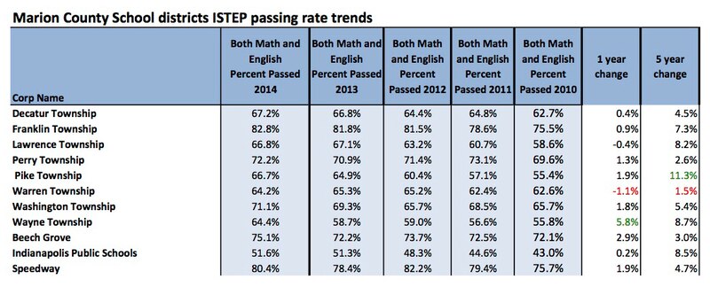 Warren (down 1.1 points) and Lawrence (down 0.4 points), were the only Marion County districts that saw their passing rates drop.