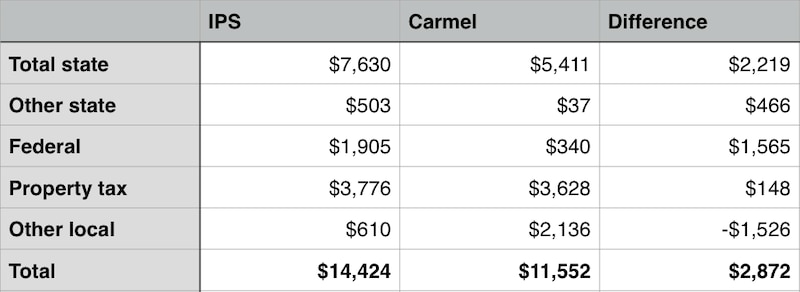 The difference — about $40,000 a year in extra income per family in Carmel, pays for lots of advantages for many more families in that city.