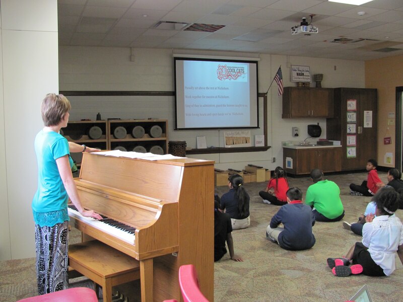 Price, for example, has just 37 class sessions with her students. That means she has to make the most of what she has. She focuses less on history except when it corresponds with another teacher’s lesson, but she does very clearly outline the music-reading goals she has for each grade level she works with.