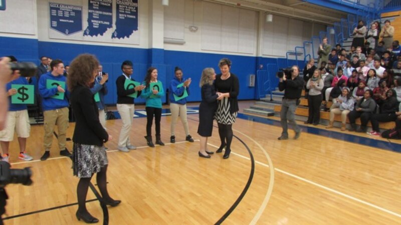 - Shortridge High School students spell out $25,000, the prize that goes with the Milken Award, with help from Indiana State Superintendent Glenda Ritz.