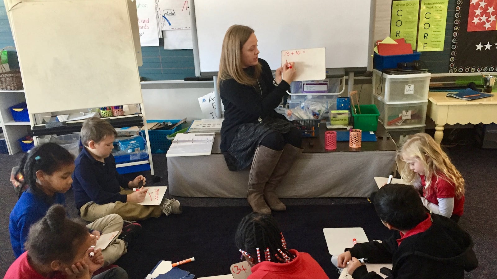 In Amanda Henry’s first-grade math class one February afternoon, students were scattered across the room.