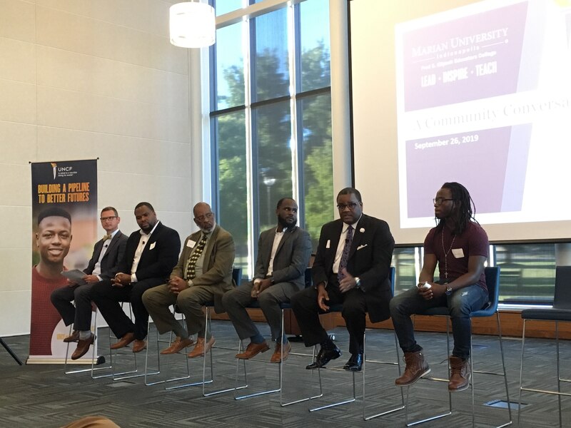 Marian’s Klipsch Educators College and UNCF hosted a community conversation Thursday night on bolstering the pipeline of diverse teachers and school administrators, particularly black men. About 50 people turned out to hear panelists, including Dinkins, talk about their backgrounds and their work supporting educators of color.