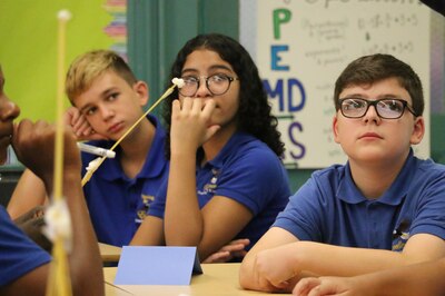 After leaving Johnson’s room Tuesday morning, Mayor Baraka and Superintendent León stopped by a seventh-grade math class where teams of students were building towers out of noodles and marshmallows.
