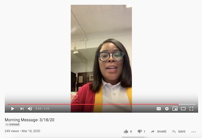 In order to keep the school community connected, Principal Genique Flournoy-Hamilton records daily video messages, and this Monday hosted online meetings with students in each grade level. The school also plans to offer virtual versions of its clubs, including taekwondo and dance.