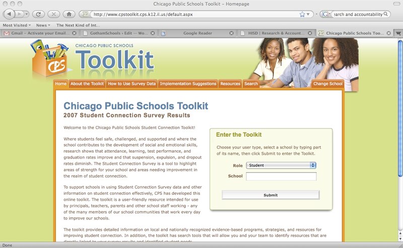 Finally, check out Chicago’s Toolkit for exploring their Student Connection Survey results. Incredibly easy to use, it provides materials for helping the user go from analyzing data to acting on it to improve schools. A search tool allows you to find targeted interventions and strategies for specific groups of students with just a few clicks.