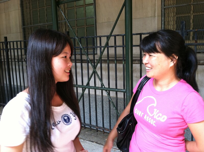Xia Lin took the lead when she and her mom, Xinyan, stopped by the center at Brooklyn Tech.