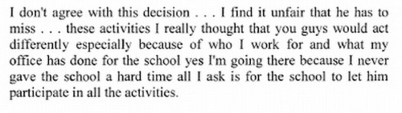 Here’s what Veras wrote to administrators at her son’s school — from her work email account — after they told her that her son would not be able to attend eighth-grade activities because he did not meet promotion criteria: